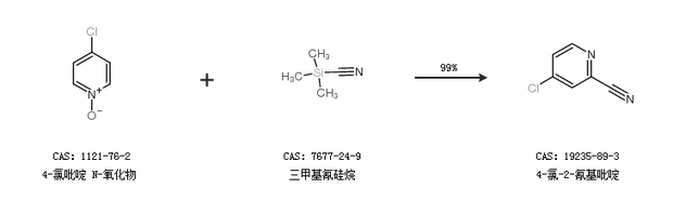 1.通过4-氯吡啶 N-氧化物和三甲基氰硅烷合成4-氯-2-氰基吡啶,收率约99%;