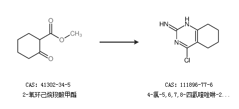 1.通过2-氧环己烷羧酸甲酯合成4-氯-5,6,7,8-四氢喹唑啉-2-胺