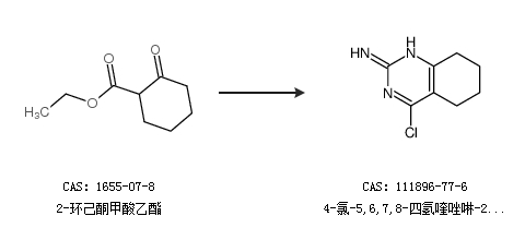 2.通过2-环己酮甲酸乙酯合成4-氯-5,6,7,8-四氢喹唑啉-2-胺