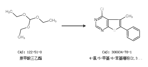 2.通过原甲酸三乙酯合成4-氯-5-甲基-6-苯基噻吩[2,3-D]嘧啶