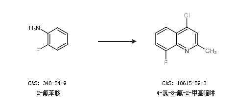1.通过2-氟苯胺合成4-氯-8-氟-2-甲基喹啉