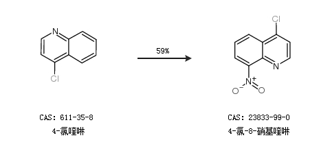 2.通过4-氯喹啉合成4-氯-8-硝基喹啉,收率约59%;