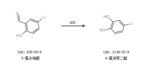 2.通过5-氯水杨醛合成4-氯邻苯二酚,收率约92%;
