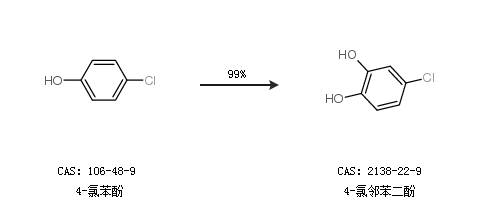 1.通过4-氯苯酚合成4-氯邻苯二酚,收率约99%;