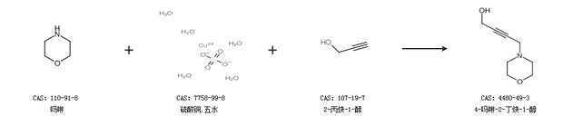 1.通过吗啉、硫酸铜,五水和2-丙炔-1-醇合成4-吗啉-2-丁炔-1-醇
