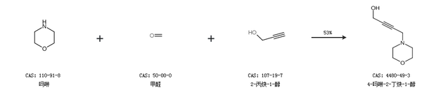 2.通过吗啉、甲醛和2-丙炔-1-醇合成4-吗啉-2-丁炔-1-醇,收率约53%;