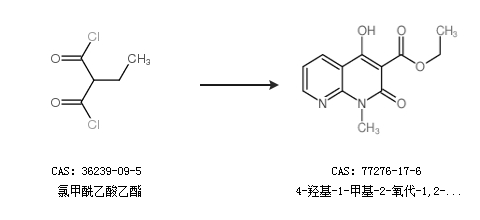 1.通过氯甲酰乙酸乙酯合成4-羟基-1-甲基-2-氧代-1,2-二氢-1,8-萘啶-3-羧酸乙酯