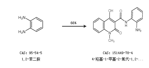 1.通过1,2-苯二胺合成4-羟基-1-甲基-2-氧代-1,2-二氢喹啉-3-羧酸(2-氨基苯基)-胺,收率约66%;