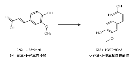 1.通过3-甲氧基-4-羟基肉桂酸合成4-羟基-3-甲氧基肉桂酰胺