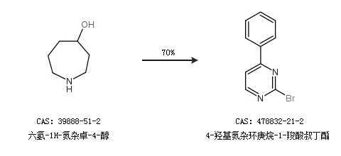 2.通过六氢-1H-氮杂卓-4-醇合成4-羟基氮杂环庚烷-1-羧酸叔丁酯,收率约70%;