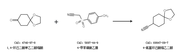 2.通过1,4-环己二酮单乙二醇缩酮和4-甲苯磺酰乙腈合成4-氰基环己酮缩乙二醇