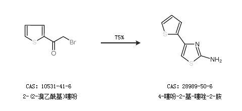 1.通过2-(2-溴乙酰基)噻吩合成4-噻吩-2-基-噻唑-2-胺,收率约75%;