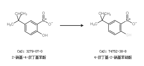 1.通过2-硝基-4-叔丁基苯酚合成4-叔丁基-2-硝基苯硫酚