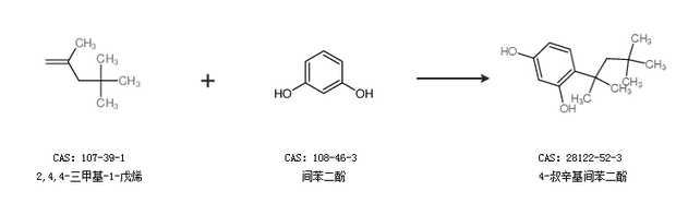 1.通过2,4,4-三甲基-1-戊烯和间苯二酚合成4-叔辛基间苯二酚