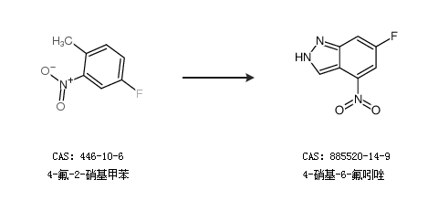 1.通过4-氟-2-硝基甲苯合成4-硝基-6-氟吲唑