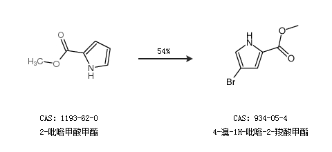 2.通过2-吡咯甲酸甲酯合成4-溴-1H-吡咯-2-羧酸甲酯,收率约54%;