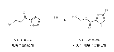 2.通过吡咯-2-羧酸乙酯合成4-溴-1H-吡咯-2-羧酸乙酯,收率约53%;