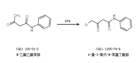 1.通过N-乙酰乙酰苯胺合成4-溴-3-氧代-N-苯基丁酰胺,收率约87%;