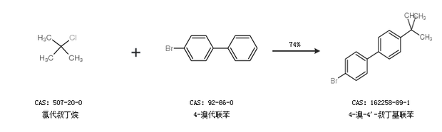 1.通过氯代叔丁烷和4-溴代联苯合成4-溴-4''-叔丁基联苯,收率约74%;