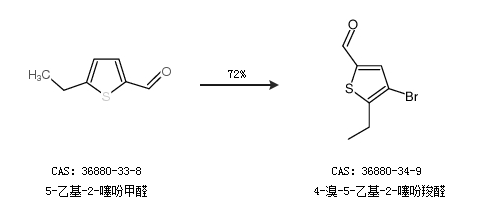 1.通过5-乙基-2-噻吩甲醛合成4-溴-5-乙基-2-噻吩羧醛,收率约72%;