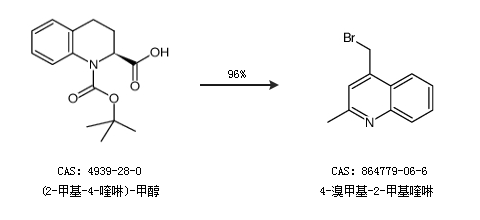 1.通过(2-甲基-4-喹啉)-甲醇合成4-溴甲基-2-甲基喹啉,收率约96%;