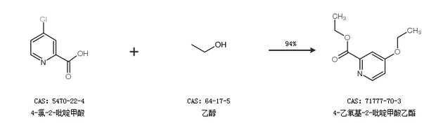 1.通过4-氯-2-吡啶甲酸和乙醇合成4-乙氧基-2-吡啶甲酸乙酯,收率约94%;