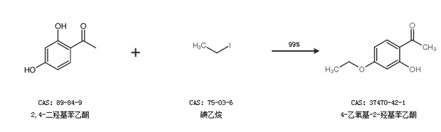 1.通过2,4-二羟基苯乙酮和碘乙烷合成4-乙氧基-2-羟基苯乙酮,收率约99%;