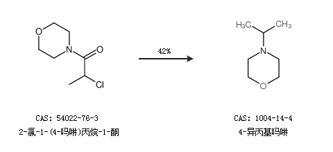 1.通过2-氯-1-(4-吗啉)丙烷-1-酮合成4-异丙基吗啉,收率约42%;
