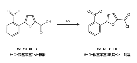 1.通过5-(2-硝基苯基)-2-糠酸合成5-(2-硝基苯基)呋喃-2-甲酰氯,收率约82%;