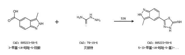 1.通过3-甲基-1H-吲唑-5-羧酸和灭鼠特合成5-(3-甲基-1H-吲唑-5-基)-1,3,4-噻二唑-2-胺,收率约53%;