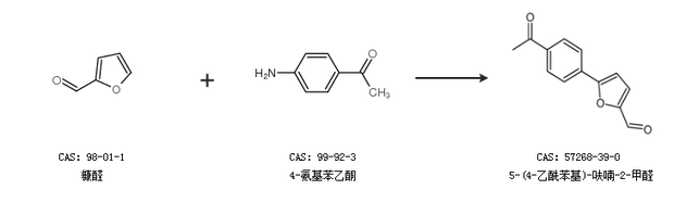 2.通过糠醛和4-氨基苯乙酮合成5-(4-乙酰苯基)-呋喃-2-甲醛