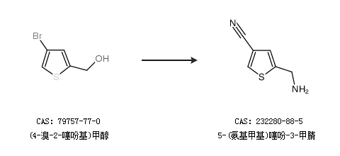 1.通过(4-溴-2-噻吩基)甲醇合成5-(氨基甲基)噻吩-3-甲腈