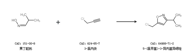 1.通过異丁醛肟和3-氯丙炔合成5-(氯甲基)-3-异丙基异噁唑