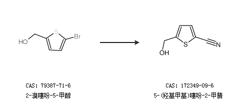 2.通过2-溴噻吩-5-甲醇合成5-(羟基甲基)噻吩-2-甲腈