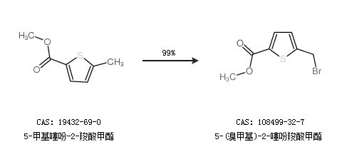 1.通过5-甲基噻吩-2-羧酸甲酯合成5-(溴甲基)-2-噻吩羧酸甲酯,收率约99%;