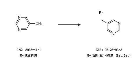 1.通过5-甲基嘧啶合成5-(溴甲基)-嘧啶 (8ci,9ci),收率约35%;