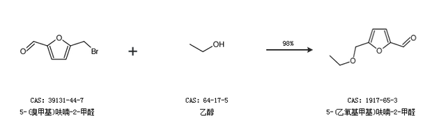 2.通过5-(溴甲基)呋喃-2-甲醛和乙醇合成5-(乙氧基甲基)呋喃-2-甲醛,收率约98%;