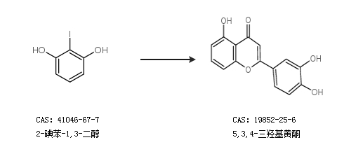 1.通过2-碘苯-1,3-二醇合成5,3,4-三羟基黄酮