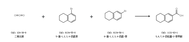 2.通过二氧化碳、5-溴-1,2,3,4-四氢萘和6-溴-1,2,3,4-四氢-萘合成5,6,7,8-四羟基-2-萘甲酸