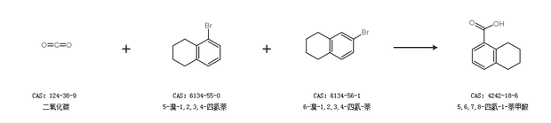 2.通过二氧化碳、5-溴-1,2,3,4-四氢萘和6-溴-1,2,3,4-四氢-萘合成5,6,7,8-四氢-1-萘甲酸