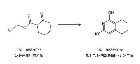 1.通过2-环己酮甲酸乙酯合成5,6,7,8-四氢异喹啉-1,3-二醇