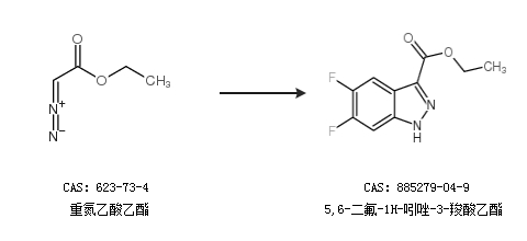 1.通过重氮乙酸乙酯合成5,6-二氟-1H-吲唑-3-羧酸乙酯