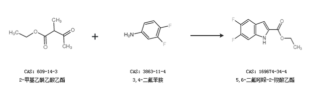 1.通过2-甲基乙酰乙酸乙酯和3,4-二氟苯胺合成5,6-二氟吲哚-2-羧酸乙酯
