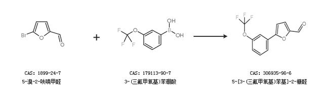 1.通过5-溴-2-呋喃甲醛和3-(三氟甲氧基)苯硼酸合成5-[3-(三氟甲氧基)苯基]-2-糠醛