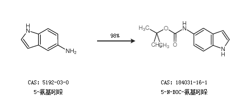 1.通过5-氨基吲哚合成5-N-BOC-氨基吲哚,收率约98%;