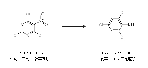 1.通过2,4,6-三氯-5-硝基嘧啶合成5-氨基-2,4,6-三氯嘧啶