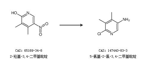 1.通过2-氯-3,4-二甲基-5-硝基吡啶合成5-氨基-2-氯-3,4-二甲基吡啶,收率约73%;
