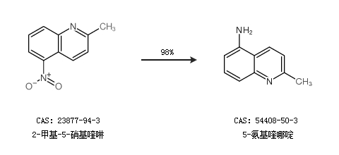 1.通过2-甲基-5-硝基喹啉合成5-氨基喹哪啶,收率约98%;