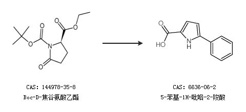 1.通过Boc-D-焦谷氨酸乙酯合成5-苯基-1H-吡咯-2-羧酸