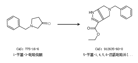 1.通过1-苄基-3-吡咯烷酮合成5-苄基-1,4,5,6-四氢吡咯并[3,4-c]吡唑-3-羧酸乙酯